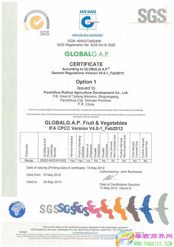攀枝花市銳華農(nóng)業(yè)開發(fā)責(zé)任有限公司的芒果種植基地是國內(nèi)首個(gè)通過了歐洲良好農(nóng)業(yè)規(guī)范(GAP)認(rèn)證的種植基地!公司的“攀枝花”牌芒果,枇杷通過國家綠色食品認(rèn)證,是四川省農(nóng)業(yè)產(chǎn)業(yè)化重點(diǎn)龍頭企業(yè),四川省助農(nóng)增收作用突出龍頭企業(yè),四川省農(nóng)業(yè)科技園區(qū),四川省農(nóng)業(yè)生態(tài)園區(qū)。是攀枝花市唯一取得農(nóng)產(chǎn)出口資質(zhì)的企業(yè)。全程標(biāo)準(zhǔn)化種植生產(chǎn),嚴(yán)格的品控管理,綠色產(chǎn)品,出口品質(zhì),更值得信賴!