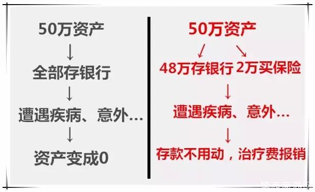 把錢放在銀行和把一部分錢放在保險(xiǎn)公司其余存銀行,到底有什么區(qū)別,一張圖就可以看明白了。
