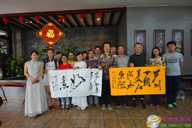 10日上午,楊和平先生首站來到位于竹湖園紫荊山嘉泰茶樓的攀枝花市茶藝協(xié)會(huì),分別聽取了攀枝花市住房和城鄉(xiāng)規(guī)劃建設(shè)局、攀枝花市旅游局、攀枝花市茶藝協(xié)會(huì)等對(duì)攀枝花市城市規(guī)劃建設(shè)及城市轉(zhuǎn)型、康養(yǎng)旅游、茶業(yè)茶藝的全面介紹后,興致勃勃,稱贊攀枝花太美,當(dāng)即為與會(huì)者留下墨寶。