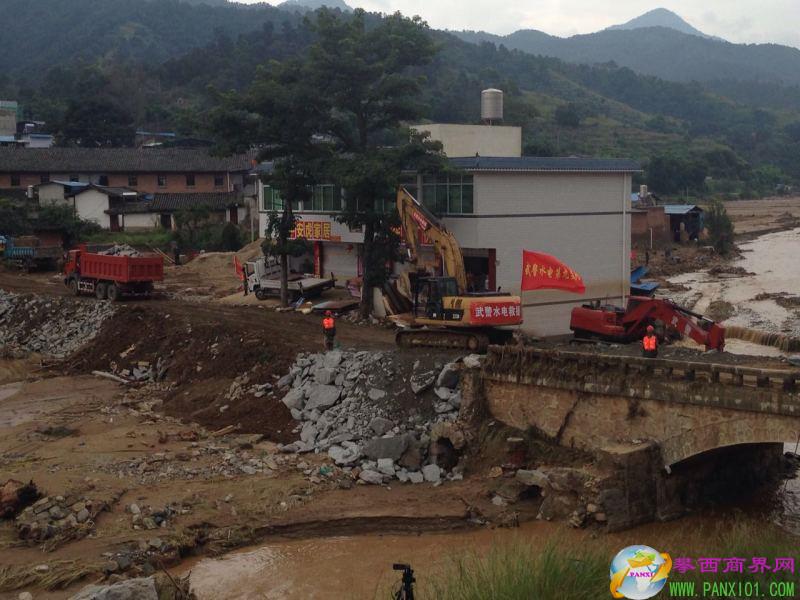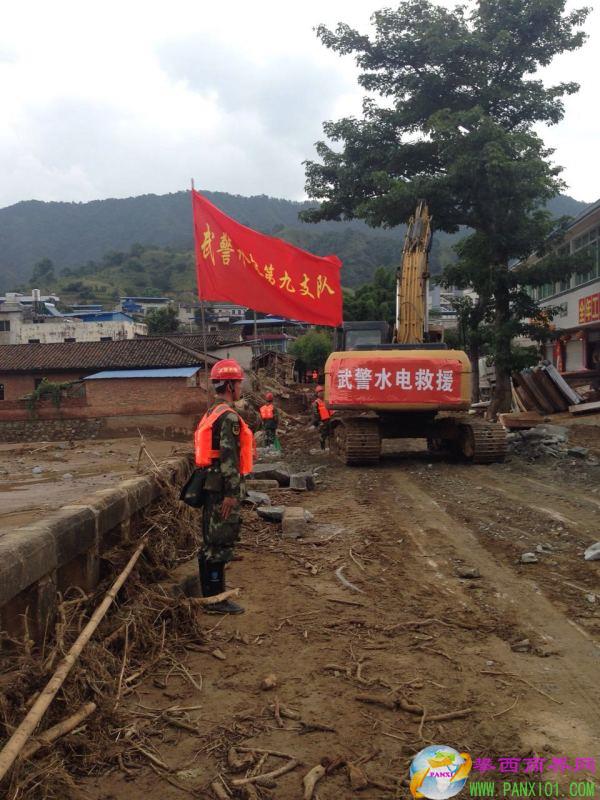 此次攀枝花特大暴雨引發(fā)的山洪沖毀了溪流沿岸的許多生活基礎(chǔ)設(shè)施,其中啊喇鄉(xiāng)永富村的永富橋受損嚴(yán)重。為了盡快打通通往啊喇村的道路,武警水電第九支隊投入了包括挖掘機、裝載機、自卸車等10多臺套主戰(zhàn)裝備,在此處修復(fù)橋梁,經(jīng)過15個小時連續(xù)搶修搶建,目前能夠滿足行人、摩托車和小車的行駛。為了不影響當(dāng)?shù)乩习傩盏纳a(chǎn)生活,通車后采取了"邊放行邊施工"的方式,雖然全面修復(fù)進(jìn)度受到了一定的影響,但救援物資和受困人員可以通過橋梁進(jìn)出,武警水電官兵也正在積極采?。⑼貙挊蝾^路基面和保護橋墩的措施。(武警水電第九支隊 唐銳 供稿)