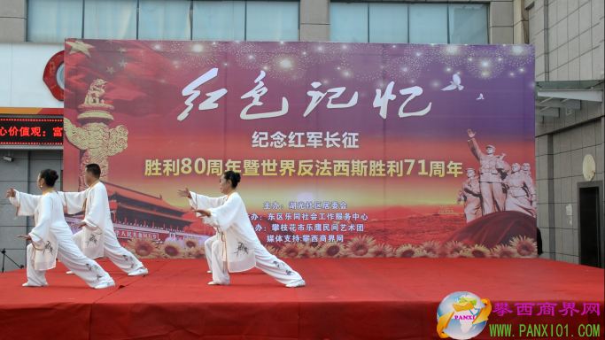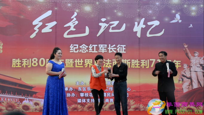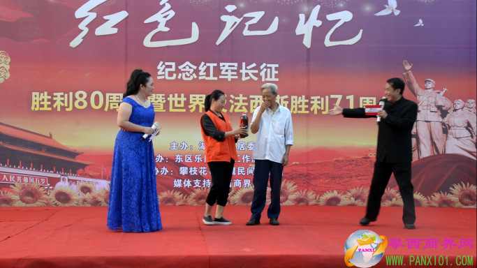 付濤:以紅色記憶為主題的紀念紅軍長征勝利80周年暨世界反法西斯勝利71周年演出活動今天在翌晨廣場隆重舉行了,我是今天的主持人付濤!