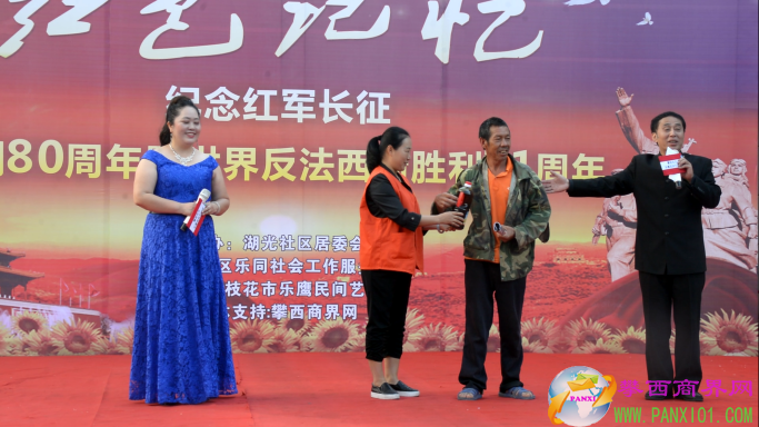付蘭:我是主持人付蘭!本次演出活動由湖光社區(qū)居委會主辦,攀枝花市東區(qū)樂同社會工作服務(wù)中心承辦。