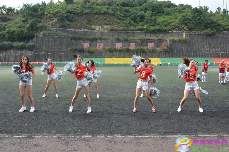 攀枝花大學(xué)團委組織學(xué)生方隊為青商會足球隊前來助興。