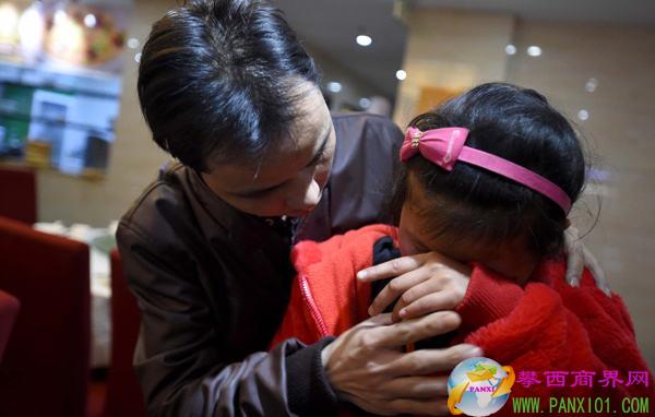 1月22日,在廣州某飯店內(nèi)的團(tuán)聚現(xiàn)場(chǎng),留守兒童陳瑩瑩(右)見(jiàn)到爸爸陳順華后激動(dòng)地流淚。新華社記者 薛玉斌 攝