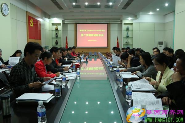 攀西商界網(wǎng)(攀枝花市三中 供稿)3月6日晚7:30,攀枝花市三中“2016-2017學(xué)年度第二學(xué)期教研組長會”在學(xué)校圖書館會議室召開,會議安排布置了本學(xué)期學(xué)校教學(xué)及教研工作。全體校級領(lǐng)導(dǎo)、教務(wù)科科長、年級主任、學(xué)校教研組長、年級教研組長及教務(wù)科全體工作人員70余人參加了會議。