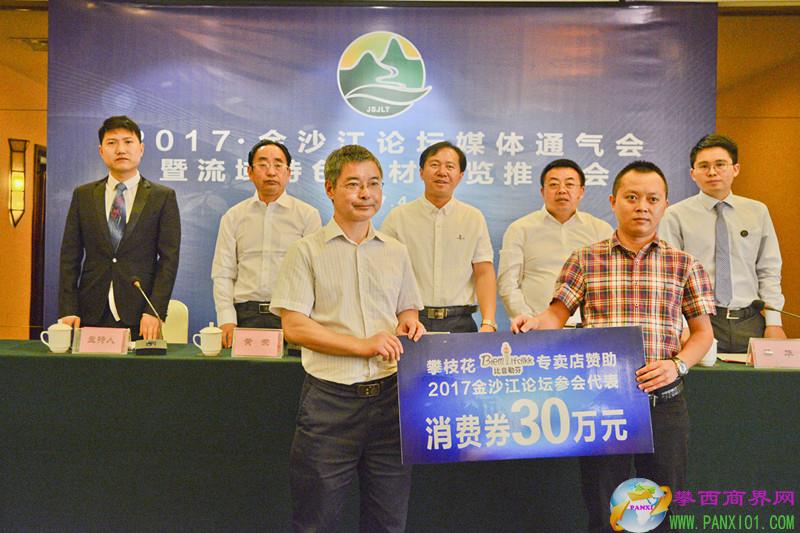 通氣會上,攀枝花比音勒芬專賣店總經(jīng)理施從軍先生向2017·金沙江論壇參會代表贊助30萬元體驗(yàn)消費(fèi)劵。據(jù)了解,本次論壇受到流域社會各界的廣泛關(guān)注、大力支持和積極參與。施從軍先生不僅是攀枝花市東區(qū)政協(xié)委員、也是攀枝花市陽光康養(yǎng)產(chǎn)業(yè)研究會常務(wù)會長、市瀘州商會副會長,年輕有為、事業(yè)有成,而且熱心公益、社會責(zé)任感強(qiáng)。