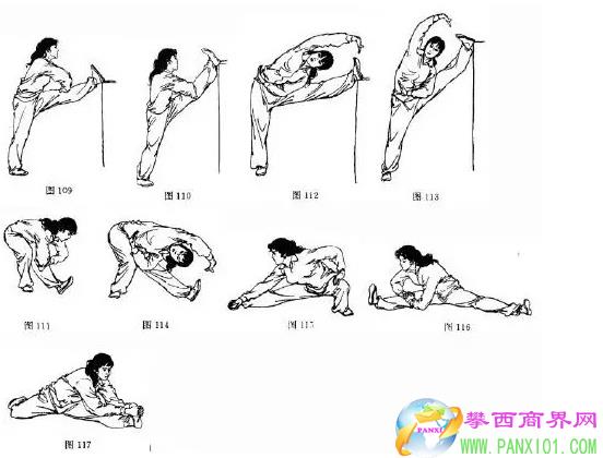 耗腿每腿10-15分鐘,再踢腿每腿50~100下。