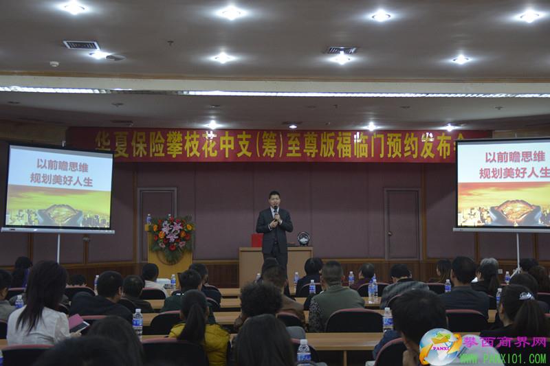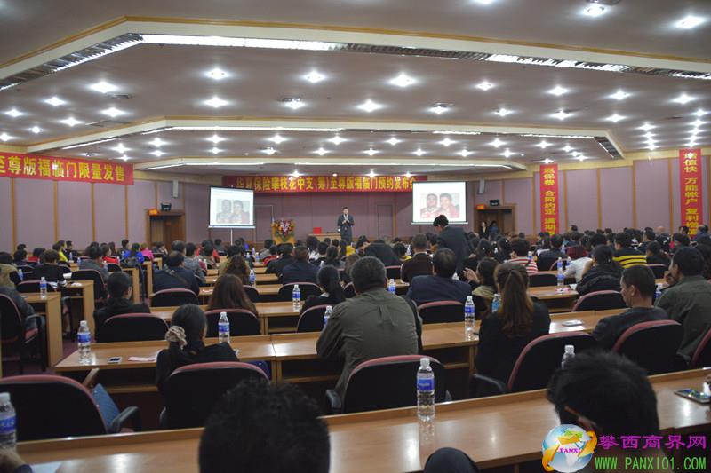 3月6日,華夏保險攀枝花中支(籌)在攀枝花會展中心報告廳舉行至尊版福臨門預約發(fā)布會,來自攀枝花的客戶踴躍前來聆聽。