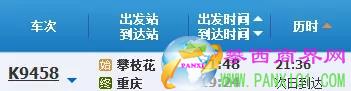 K9458次攀枝花至重慶列車出發(fā)時(shí)間是21:48,到達(dá)重慶時(shí)間為次日19:24;