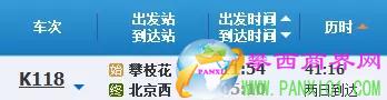 攀枝花-北京西k118次列車,由11:53開,調(diào)整為11:54開;