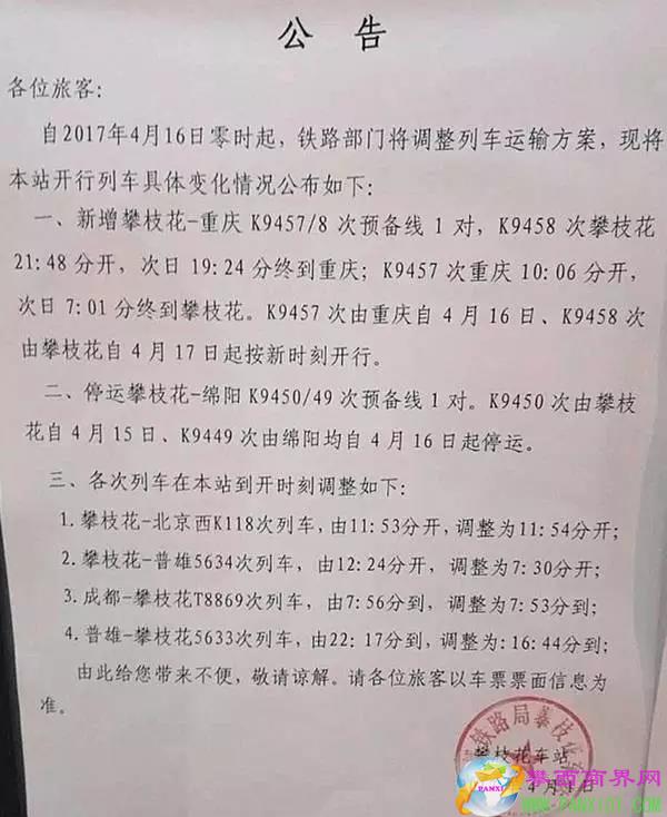 自2017年4月16日零時(shí)起,鐵路部門調(diào)整列車運(yùn)輸方案,攀枝花火車站開行列車有這些變化!