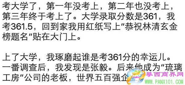 我大兒子上大學(xué)的時候,我送了他一個錦囊,里面四句話:大其愿,堅其志,虛其心,柔其氣。一個成功的人只要有大的愿望理想、堅強的意志、謙遜的態(tài)度和溫柔的氣質(zhì)就行了。