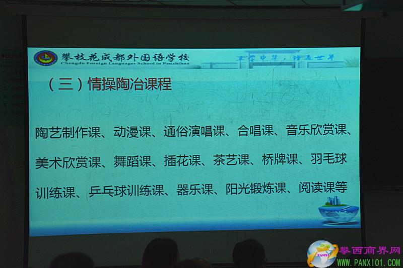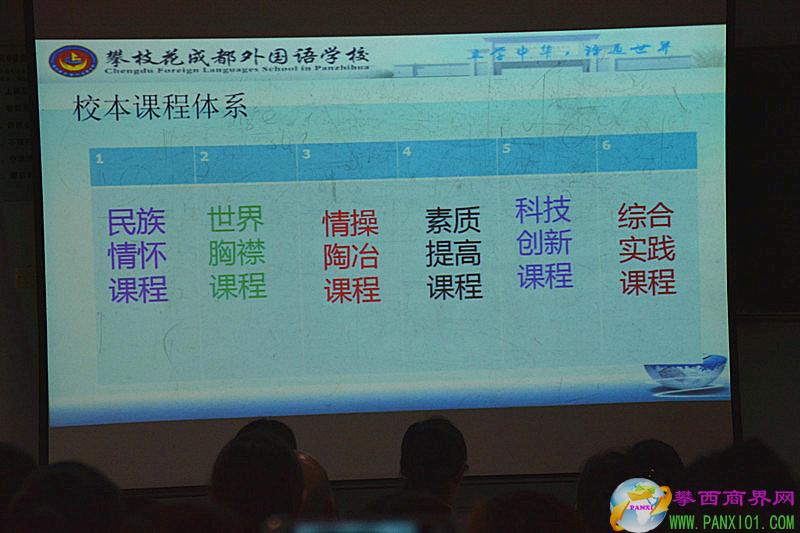 會議室座無虛席,還有的家長是站著聽了2個多小時的專題報告。據(jù)攀枝花市成都外國語學校副校長王維榮介紹,該校校本課程體系全面而豐富,與傳統(tǒng)教育有著顯著的區(qū)別:
