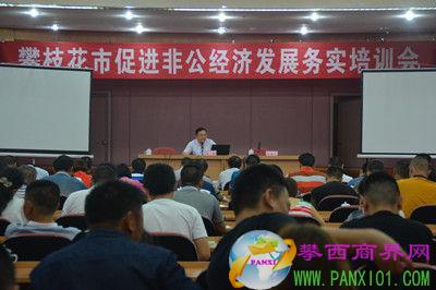 攀西商界網(wǎng)(熊麗萍) 攀枝花市工商聯(lián)為了更好的貫徹落實(shí)省第11次黨代會(huì)的精神,深入貫徹落實(shí)市委、市政府相關(guān)要求,進(jìn)一步促進(jìn)“兩個(gè)健康發(fā)展“, 6月20日上午,在攀枝花市攀賓會(huì)展中心報(bào)告廳舉辦了2017年促進(jìn)非公經(jīng)濟(jì)發(fā)展務(wù)實(shí)培訓(xùn)會(huì)。