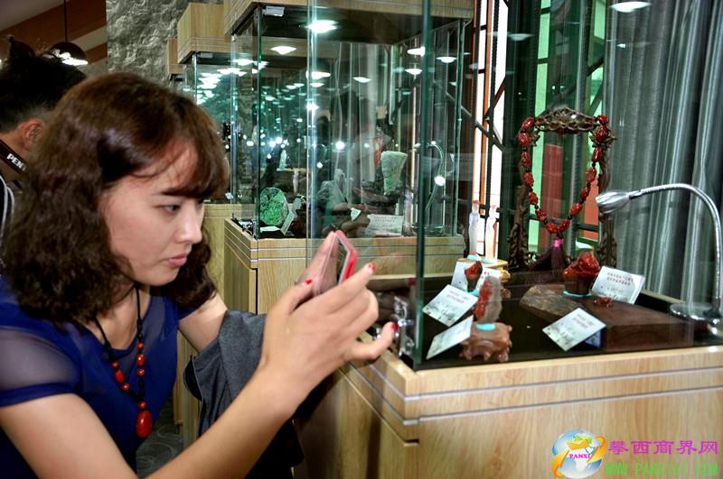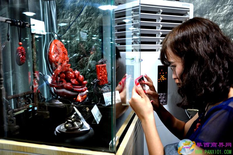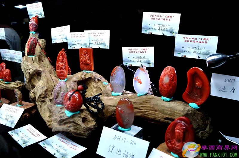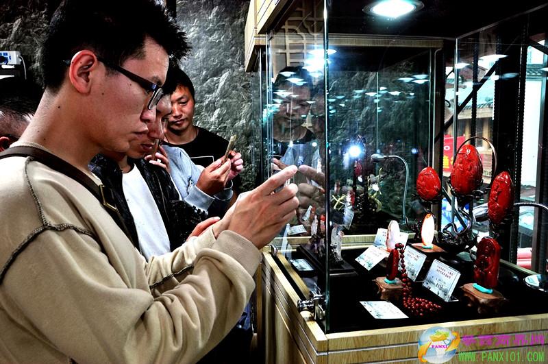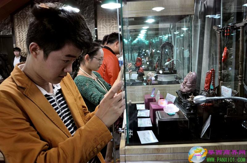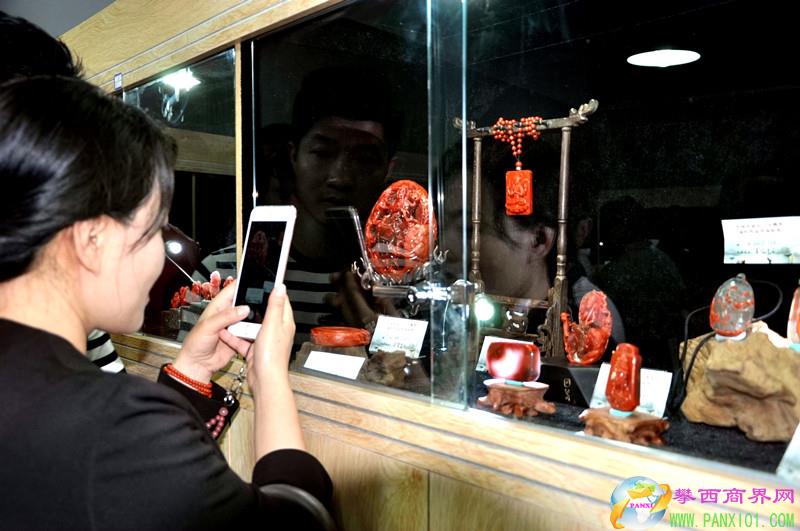 來賓和南紅愛好者參觀南紅“玉鷹獎(jiǎng)獲獎(jiǎng)作品展。