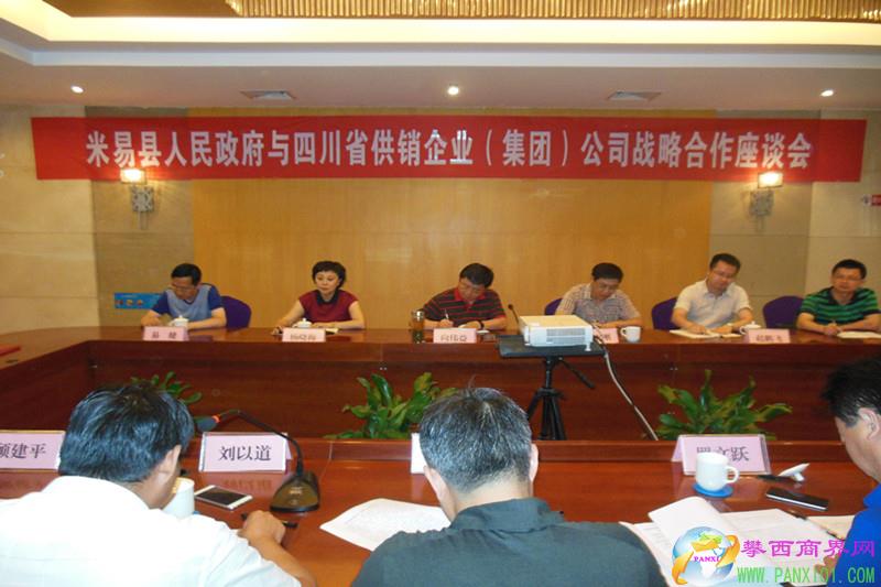 攀西商界網(wǎng)(米易縣供銷合作社 蒲 敏)7月14日,米易縣人民政府與四川省供銷企業(yè)(集團(tuán))公司戰(zhàn)略合作座談會(huì)在米易縣安寧明珠大酒店舉行,雙方就加強(qiáng)戰(zhàn)略合作的相關(guān)事宜進(jìn)行了充分交流,均表達(dá)了戰(zhàn)略合作的良好意愿,并達(dá)成廣泛合作共識(shí)。