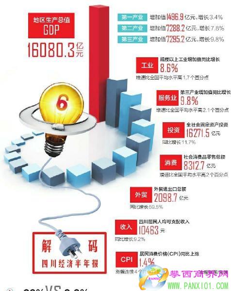 7月18日,上半年四川經(jīng)濟(jì)形勢(shì)新聞發(fā)布會(huì)上,四川經(jīng)濟(jì)半年報(bào)正式出爐:今年上半年,全省實(shí)現(xiàn)地區(qū)生產(chǎn)總值(GDP)16080.3億元,按可比價(jià)格計(jì)算,同比增長8.2%,增速比全國平均水平高1.3個(gè)百分點(diǎn)。