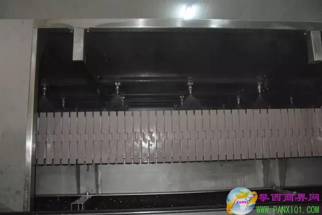在提升處10米長沖洗區(qū),長達5分鐘的高壓噴淋式?jīng)_洗對芒果表皮起到充分潔凈的作用,盡顯果面亮麗色澤。 提升區(qū)