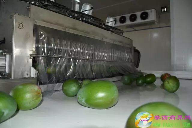 該芒果分選生產(chǎn)線引進國際最先進的生產(chǎn)技術和設備,并專門針對攀枝花“凱特”芒果果形和大小特征進行了技術創(chuàng)新,集清洗、恒溫熱處理滅菌、分級、分選、標準化生產(chǎn)、包裝等功能為一體,是目前國內(nèi)芒果產(chǎn)業(yè)唯一的標準化采后處理生產(chǎn)線,填補了國內(nèi)芒果產(chǎn)業(yè)無標準化采后處理的空白,是提升芒果果品綜合質(zhì)量關鍵技術措施之一,是延長芒果貯藏、銷售貨架期的核心技術。目前設備安裝、調(diào)試完畢,已投入規(guī)?;a(chǎn)、運行。