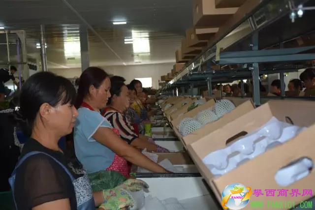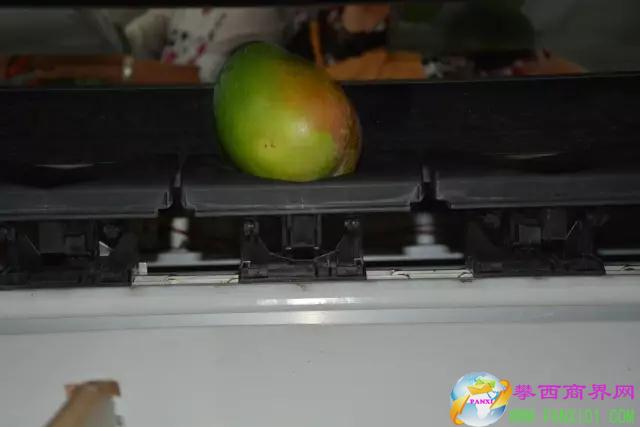 在整個選果過程,果實經(jīng)過的軌道、果盤、下果槽都鋪設有海綿墊,可有效保護芒果在分選過程中不受碰損。 通過人工輔助作業(yè)進行標準化的套網(wǎng)、包裝、貼標、打版進入冷鏈物流系統(tǒng)。