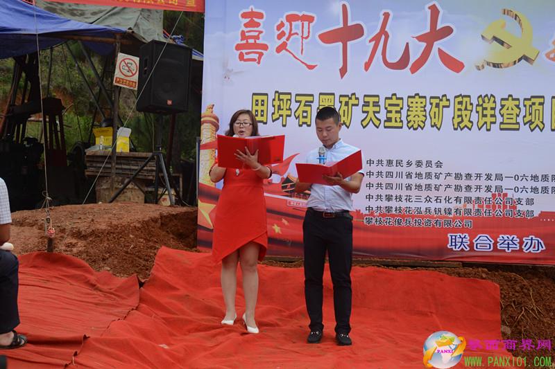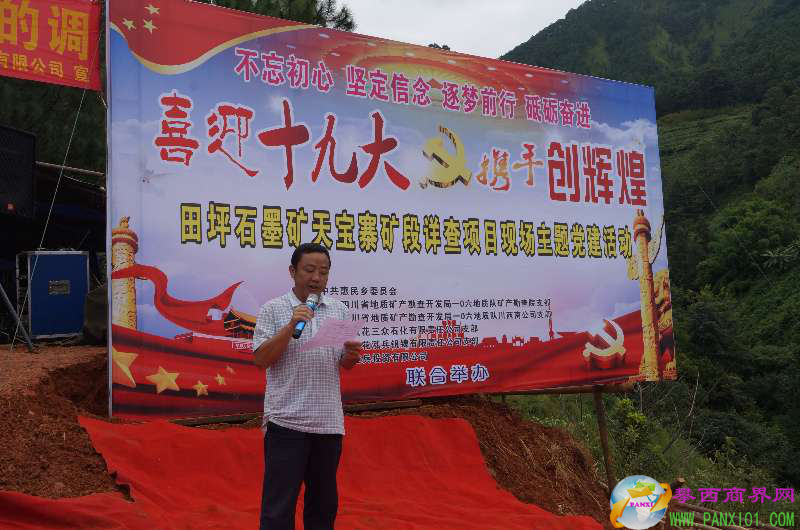 攀西商界網(wǎng)(攀枝花泓兵釩鎳有限責(zé)任公司黨支部 林春蘭)2017年9月23日上午,由攀枝花泓兵釩鎳有限責(zé)任公司黨支部與中共鹽邊縣惠民鄉(xiāng)黨委、四川省地礦局一0六地質(zhì)隊勘查院支部、四川省川西南地勘公司支部、攀枝花三眾石化公司支部、攀枝花俊兵投資有限公司共同籌辦的以 “喜迎十九大 攜手創(chuàng)輝煌”為主題的政企共建活動在鹽邊縣惠民鄉(xiāng)公司田坪石墨礦天寶寨礦段如期舉行。