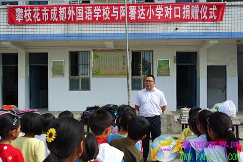攀西商界網(wǎng)( 熊麗萍)17日下午,攀枝花市成都外國(guó)語學(xué)校校長(zhǎng)助理?xiàng)詈崕ьI(lǐng)本校教職工和學(xué)生代表,來到攀枝花市阿署達(dá)小學(xué)進(jìn)行對(duì)口捐贈(zèng)活動(dòng)。