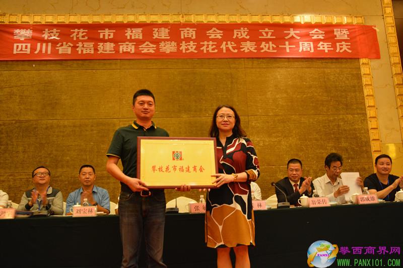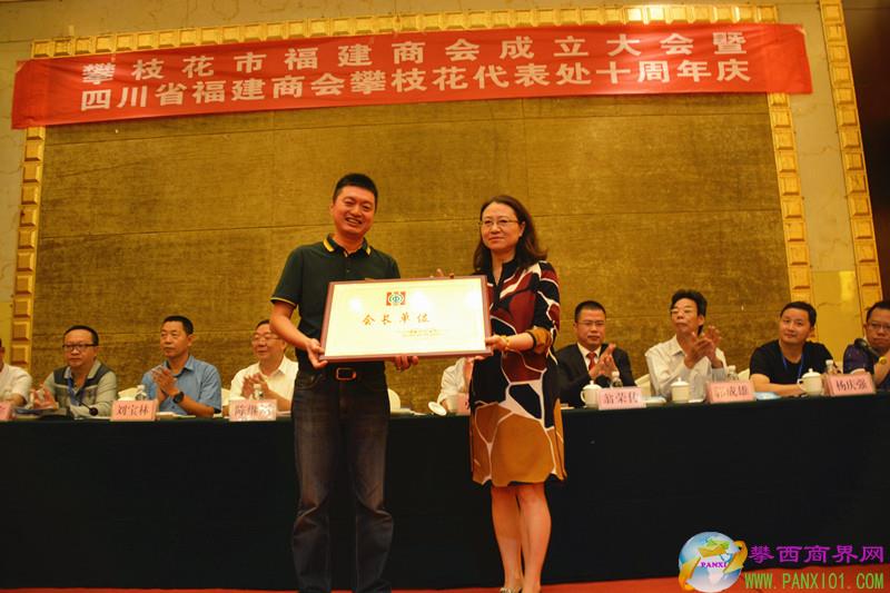 中共攀枝花市委常委、市委統(tǒng)戰(zhàn)部部長張敏出席會議并為攀枝花市福建商會和會長單位授牌。