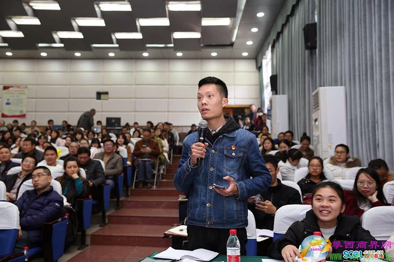 “作為新時(shí)代的青年,如何做才能實(shí)現(xiàn)人生價(jià)值?”劉宇超提問(wèn)時(shí)首先為大家分享了一首歌曲,這首歌曲是他和學(xué)院“共青人”青年志愿者服務(wù)隊(duì)成員們一起為貴州省習(xí)水縣隆興鎮(zhèn)淋灘村創(chuàng)作的。連續(xù)三年,他和同學(xué)們一起到淋灘村開(kāi)展“三下鄉(xiāng)”活動(dòng)。劉宇超說(shuō),聆聽(tīng)張政總編輯的宣講,也堅(jiān)定了他剛作出的選擇,臨近畢業(yè),本來(lái)已有國(guó)企要簽他,但他覺(jué)得應(yīng)該回到自己的初心,到基層去工作。目前,他已認(rèn)真通讀過(guò)3遍黨的十九大報(bào)告。