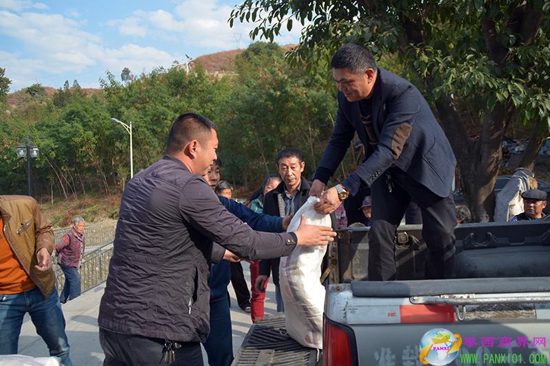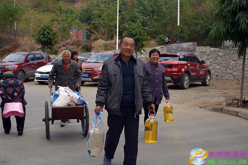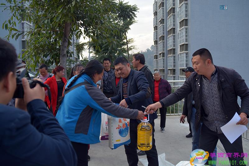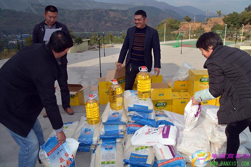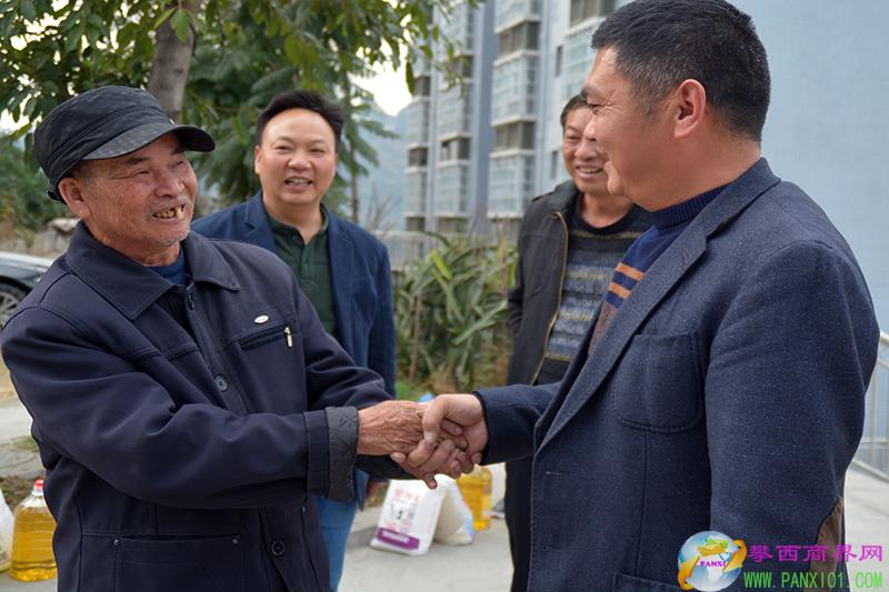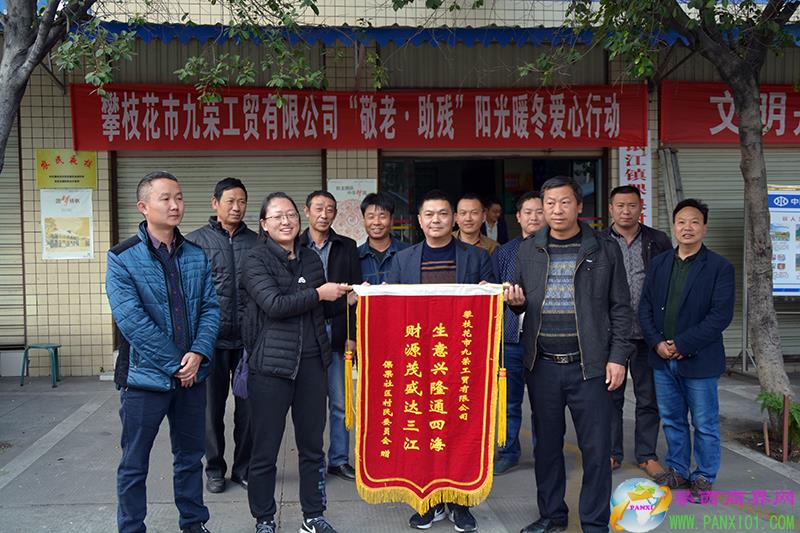 攀西商界網(wǎng)(邵畋嬌 周潔)12月27日,攀枝花市東區(qū)銀江鎮(zhèn)倮果村委會(huì)院壩異常熱鬧,“老人家,給你拜年啦,祝您新年好、身體好、健康長壽!”,隨著攀枝花市九榮工貿(mào)有限公司副總經(jīng)理蒲洪波的一聲親切問候,倮果村一組和三組的87位60歲以上的老年人和殘障人士非常感動(dòng)。