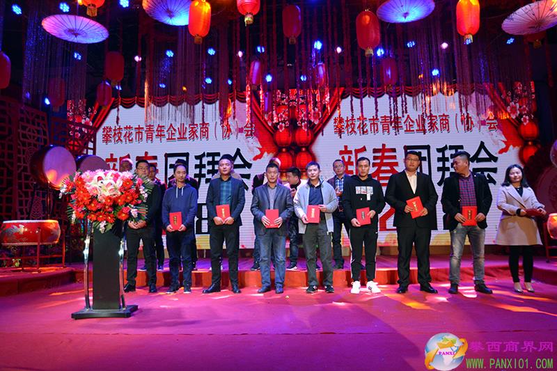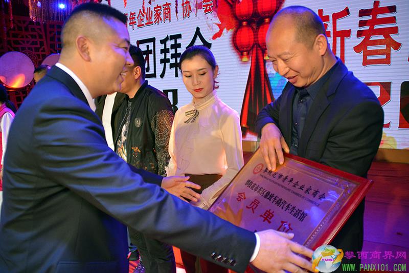 攀枝花市青年企業(yè)家商會會長王健蘇為新會員授牌。