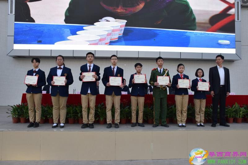 王維榮副校長和受表彰的學生合影。(圖片來源:攀枝花市成都外國語學校)