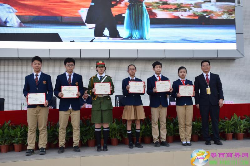 成都外國語學校校長龔智發(fā)為受表彰的同學頒發(fā)榮譽證書。(圖片來源:攀枝花市成都外國語學校)