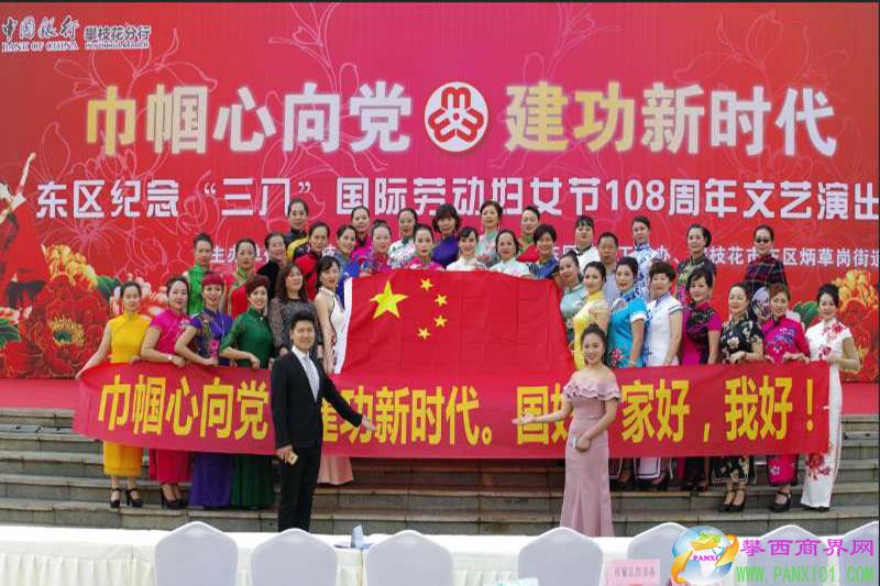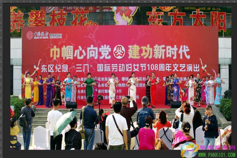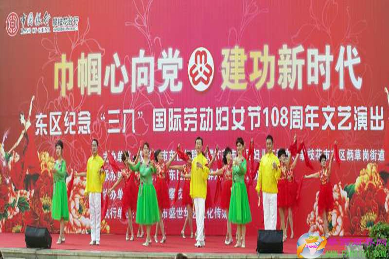 攀西商界網(wǎng)(董新春)3月6日,由東區(qū)婦聯(lián)、炳草崗街道婦聯(lián)主辦、炳草崗群眾文藝交流協(xié)會(huì)承辦、中國銀行攀枝花分行協(xié)辦的以“巾幗心向黨 建功新時(shí)代”為主題的大型文藝演出在中心廣場(chǎng)如期舉行,演出現(xiàn)場(chǎng)人潮涌動(dòng),形成了一片歡樂的海洋。
