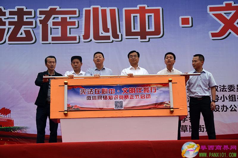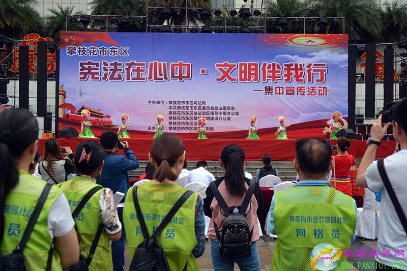 攀西商界網(wǎng)報道(攀枝花市東區(qū)司法局 牛玉 唐雯 文 熊毅 攝影)6月15日,由攀枝花市東區(qū)司法局、中共攀枝花市東區(qū)委員會政法委員會、攀枝花市東區(qū)依法治區(qū)領(lǐng)導(dǎo)小組辦公室、攀枝花市東區(qū)創(chuàng)建全國文明城市指揮部辦公室、攀枝花市東區(qū)法學(xué)會主辦,攀枝花市東區(qū)炳草崗街道承辦的以“憲法在心中·文明伴我行”為主題的2018年憲法集中宣傳活動在市中心廣場隆重舉行。