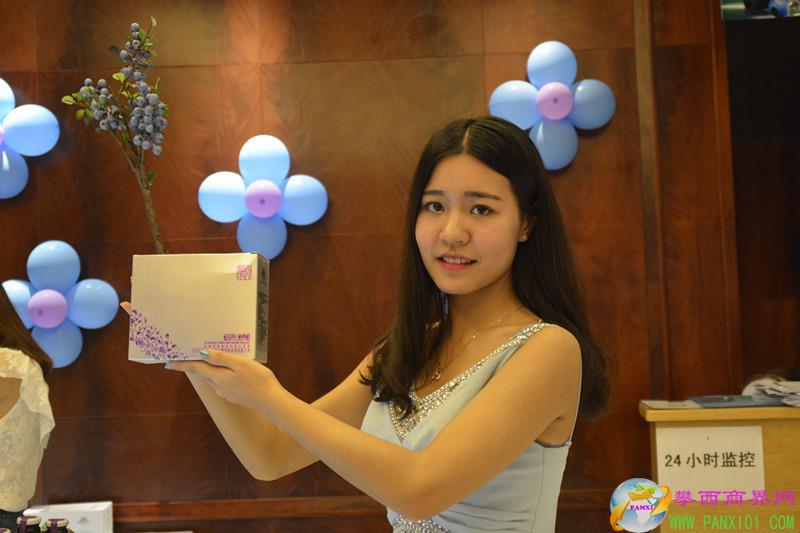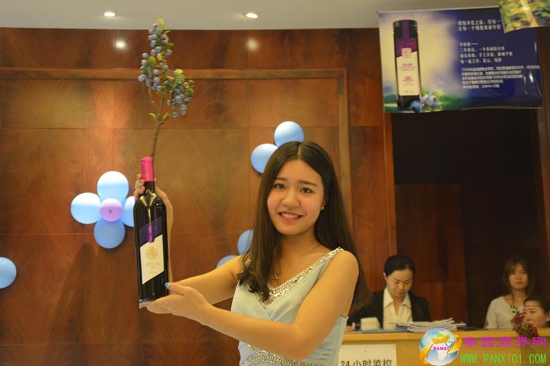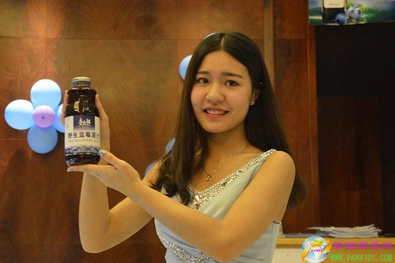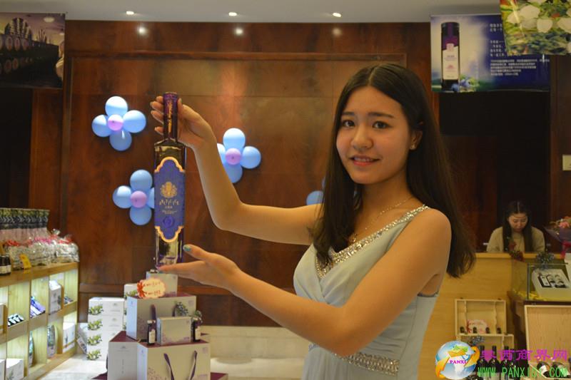 開業(yè)儀式上,藍莓白蘭地、藍莓干紅、藍莓冰酒、藍莓原漿等一系列藍莓制品在模特的手上閃亮登場。