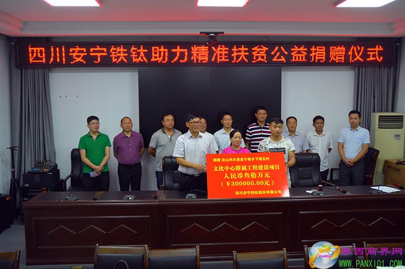 捐贈(zèng)儀式上,四川安寧鐵鈦股份有限公司為木里縣寧朗鄉(xiāng)下博瓦村文化中心的群眾活動(dòng)廣場、圍墻、廁所等附屬設(shè)施建設(shè)捐款30萬元;
