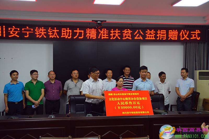 為鹽邊縣溫泉彝族鄉(xiāng)野麻地村“四好”項(xiàng)目捐款8萬元,自2016年以來,安寧鐵鈦累計(jì)為野麻地村精準(zhǔn)扶貧捐款38萬元。