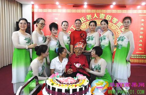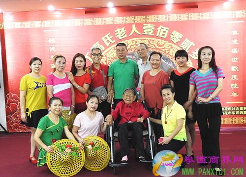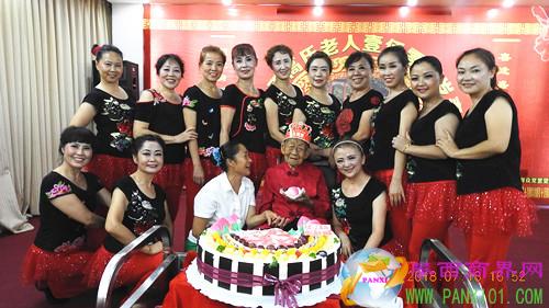 攀西商界網(wǎng)(張銘九文 王庭祥圖)2018年7月18日下午3時,攀枝花市福利院、東區(qū)炳草崗群眾文藝交流協(xié)會在市福利院多功能廳共同為福利院里最高齡的老人丁奶奶舉辦了“恭祝丁高氏102歲壽辰”的慶生活動。
