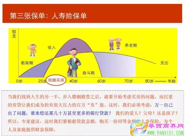 貨款買房、買車,都市里的“負(fù)翁”越來越多,背著貸款的日子過得有滋有味,也有壓力:萬一自己出了問題,誰來還那幾十萬甚至上百萬的銀行貸款?為了把這一風(fēng)險轉(zhuǎn)移出去,應(yīng)該增加一張壽險保單。只要人還活著、還健康,就代表著財富能源源不斷被創(chuàng)造出來,保障了人本身就是保障了他的財富。此外,人壽保單還有避債和避稅的功能,人即便不存在了,保險金可以不受債務(wù)糾紛以及收稅的困擾,從而實現(xiàn)財富的順利傳承。