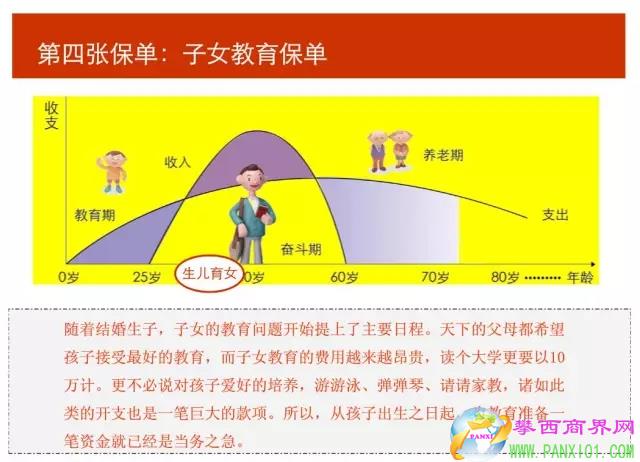 結(jié)婚后,昔日的單身貴族開始面臨家庭責(zé)任的“甜蜜負(fù)擔(dān)”。從孩子出生之后,為教育準(zhǔn)備一筆資金就成了當(dāng)務(wù)之急。教育的費用越來越昂貴,讀個大學(xué)要以數(shù)萬計,更不必說對孩子愛好的培養(yǎng),游泳、彈琴、請家教,諸如此類高昂的教育開支也是一筆巨大的款項。好在小孩出生是在父母的壯年時期,收入高,經(jīng)濟來源穩(wěn)定,此時有能力給小孩提供良好的教育基金。給孩子準(zhǔn)備一份完善的教育保障,大額的子女教育儲備金就后顧無憂了。