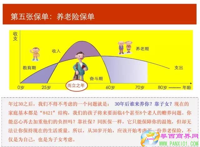 30年后誰來養(yǎng)你?這是步入中年的人群不得不考慮的問題。當(dāng)我們越來越習(xí)慣于高質(zhì)量的生活方式時,是否想到未來的生活水準(zhǔn)可能會一落千丈?很多城市居民都只有一個孩子,當(dāng)未來出現(xiàn)兩個孩子負(fù)擔(dān)四個老人的局面時,對孩子無疑也是一種巨大的壓力。規(guī)劃自己的養(yǎng)老問題,是對自己和兒女負(fù)責(zé)的體現(xiàn)。在能賺錢的年齡考慮養(yǎng)老是必要的,也是不可回避的。在資金允許的情況下,應(yīng)考慮買一份養(yǎng)老保險。養(yǎng)老保險兼具保障與理財功能,又可以抵御一部分通貨膨脹的影響。而且養(yǎng)老保險應(yīng)當(dāng)盡早購買,買得越早,獲得的優(yōu)惠越大。