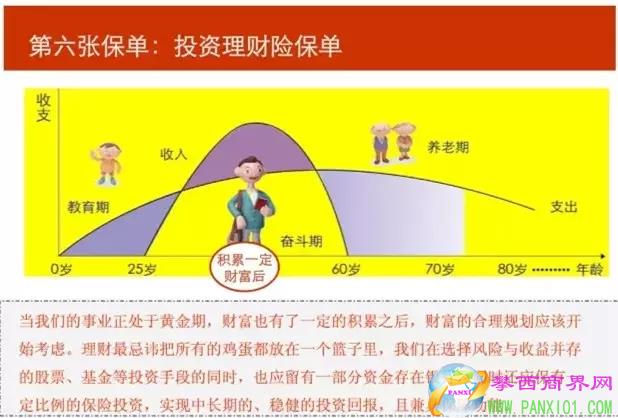 意外、重疾、養(yǎng)老、子女教育等等問題乃是人生最基本的也是難以回避的問題。在人一生中不同的階段,會面臨不同的財務(wù)需求和風(fēng)險,而在各種金融工具中,保險可以起到風(fēng)險化解和財務(wù)保障的作用。綜合分析來看,從出生到終老,人的一生之中至少需要六張不同的保單,才能做到最基礎(chǔ)的保障。
