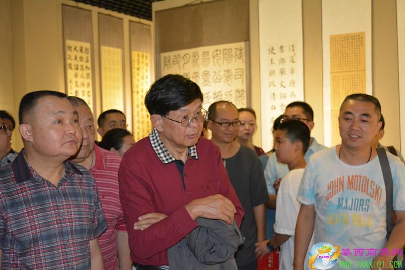 中國書法家協(xié)會顧問、四川省書法家協(xié)會主席何應(yīng)輝(中);攀枝花市政府秘書長、市書法家協(xié)會副主席徐明義;攀枝花市文聯(lián)黨組書記、主席李平;攀枝花市書法家協(xié)會主席劉?。慌手ㄊ朽]政儲蓄銀行行長曾斌出席開幕式。