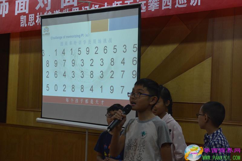 在授課現(xiàn)場,首先由30名學生和家長隨機報出60個數(shù)字顯示在投影儀上,王遠老師經(jīng)過短暫的閱讀后,在全場學生、家長的見證下,順序、倒序地背出了這60個數(shù)字,孩子和家長報以熱烈的掌聲。