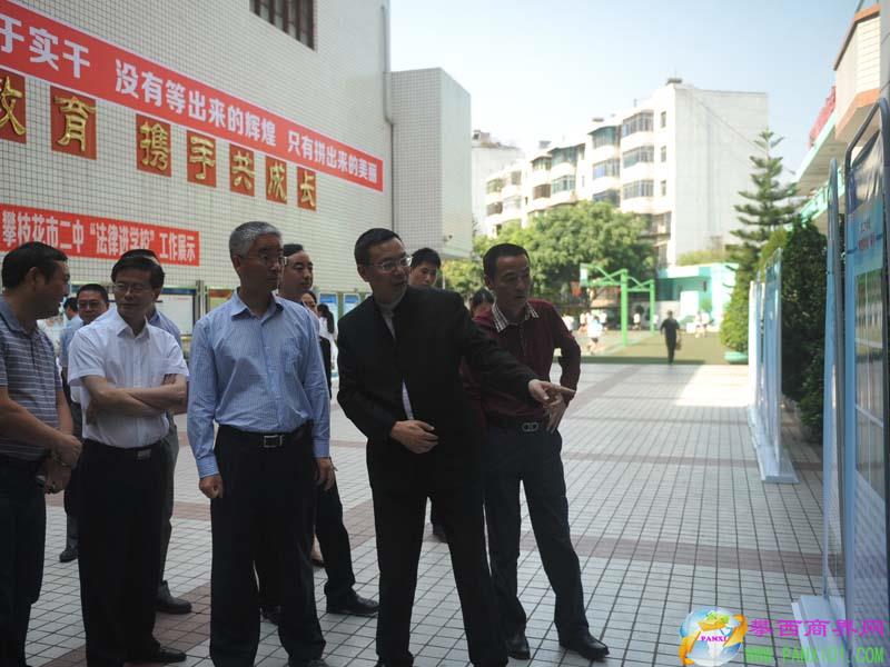 2015年4月14日,省委宣傳部紀檢專員陳興國、依法治省辦副處長嚴躍、依法治省辦干部王衍一行,在時任市委副書記的楊自力等陪同下,到市二中專項檢查“法律進學校”工作。 省市領(lǐng)導(dǎo)參觀了市二中法治教育展覽,觀摩了法律顧問林燕律師的法律課堂講座,聽取了陳丁關(guān)于“法律進學校”工作情況匯報,并進行了座談。陳興國專員對市二中“法律進學校”工作表示非常滿意,他認為攀枝花市二中法律進學校工作扎實,效果顯著,尤其對陳丁校長加強“法律進學校”工作的認識、組織與實施給予了充分肯定,認為陳丁的法治意識和行為是決定一所學校法治教育成敗的關(guān)鍵。