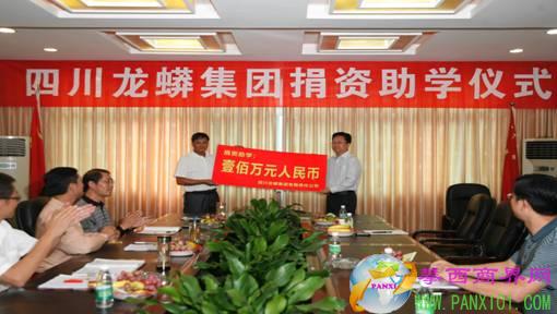攀枝花市工商聯(lián)(總商會(huì))副會(huì)長(zhǎng)張璽(右)在 捐資助學(xué)儀式上