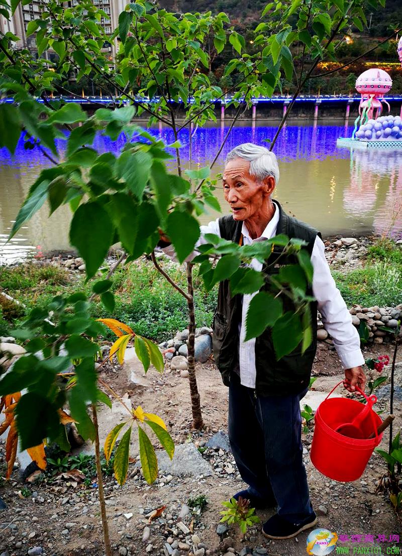 2017年2月17日,這天,一個老人提著一棵小樹苗,來到米易皮劃艇基地尾水口安寧河水邊,他搬開亂石,在沙礫中刨出一個坑,種下這棵黃葛樹苗,他把土培得結(jié)結(jié)實實,水澆得足足的。老人像是完成了人生的一件大事,輕輕舒了一口氣。從此,植樹成了他生命中的一部分,自覺公益行為深埋心中,開始了他人生最有意義的美好時光。