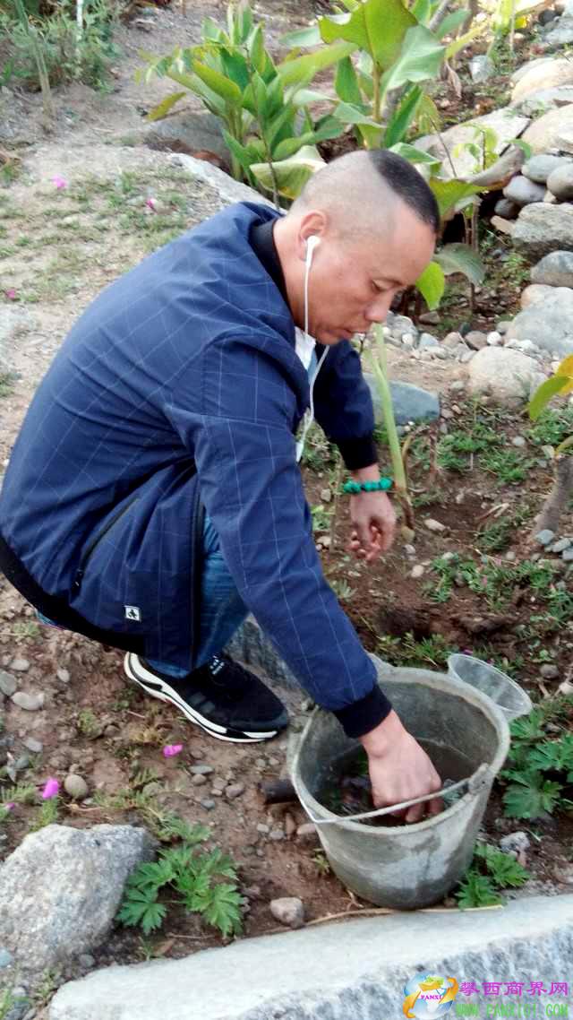 第二天(周日)早上7點35分潘杭又到河灘為樹撒肥澆水。筆者問他,潘杭:你是怎么認為這種義務(wù)植樹勞動的?