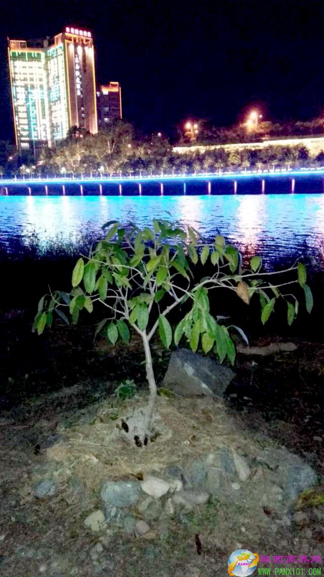 夜風(fēng)涼浸浸的河堤兩岸游人熙來攘住,藍光閃鑠,河面猶如藍寶石鋪就。對岸的瓊樓與沙地上的小樹相映成趣。這棵樹是誰栽的,至今不得而知。據(jù)說是某人被公益行為感動后悄悄栽上的,當(dāng)時嫩葉枯黃萎蔫,技條低垂,活得很委曲。經(jīng)過王祥祿老人的精心呵護。你看,現(xiàn)在這小樹,英姿勃發(fā),主干筆直,枝丫蒼勁,掛滿祖母綠葉片,多么漂亮,多么誘人!