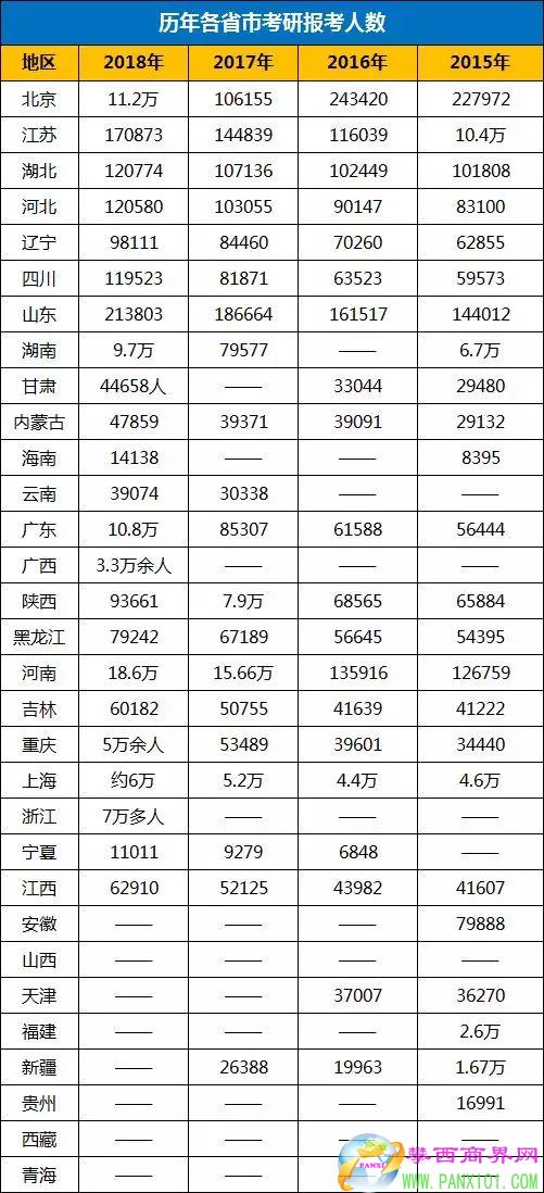 看了這些省份考研報考數(shù)據(jù),